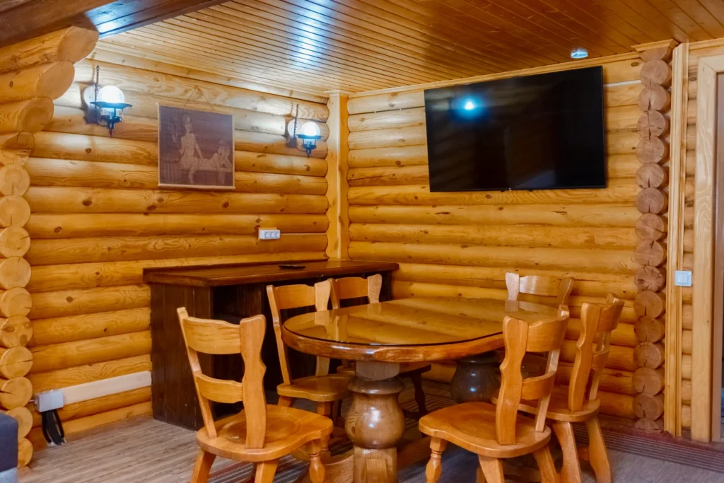 Русская баня Poiana Bradului, растапливаемая дровами, создаёт мягкий влажный пар и уютную атмосферу, идеально подходящую для глубокого расслабления. Отличный выбор для семьи или компании друзей.