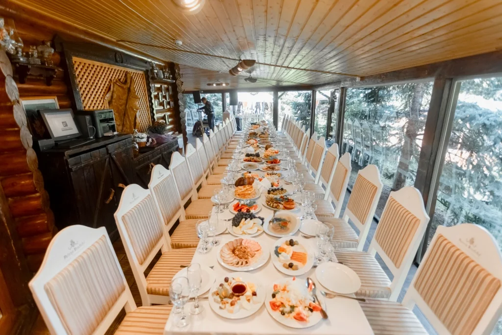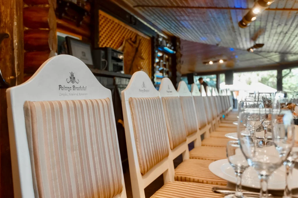 Все банкетные залы Poiana Bradului оборудованы для комфортного проведения мероприятий - свадьбы, банкета, корпоратива или семейного торжества. Формат подходит как для небольших встреч, так и для крупных торжеств. Это удобное решение для тех, кто ищет банкетный зал за городом или аренду зала для мероприятия недалеко от Кишинёва.