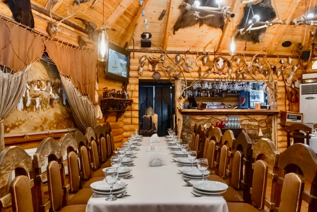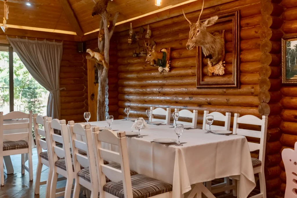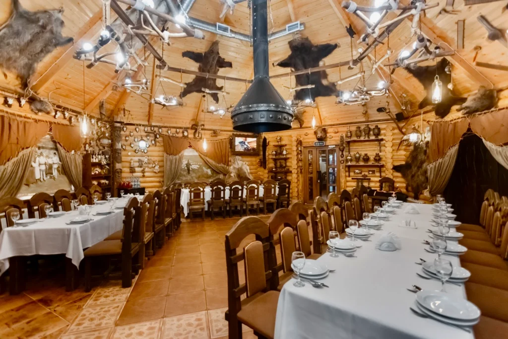 Зал «Колиба» — идеальный выбор для особенных мероприятий, вмещает до 40 человек. Его подлинная деревенская атмосфера в охотничьем стиле создаёт тёплый и гостеприимный интерьер, где каждая деталь — от массивной деревянной мебели до тематического декора — наполнена традицией и оригинальностью.