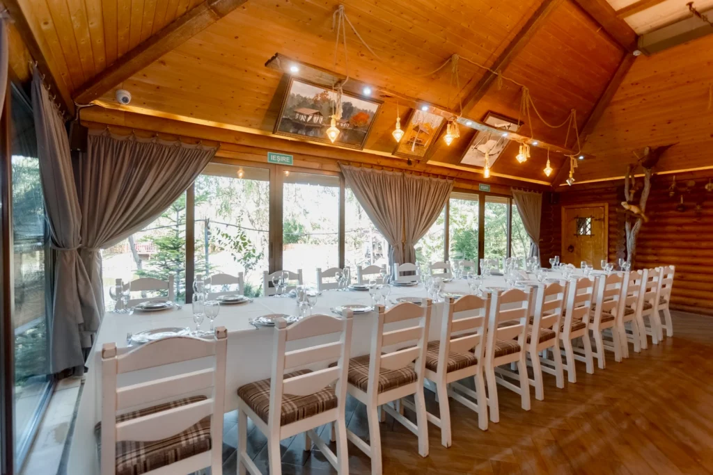 У нас вы найдёте банкетные залы для свадьбы, корпоратива, дня рождения и любого события. Это идеальное место для тех, кто ищет аренду банкетного зала рядом с Кишинёвом - в спокойной природной зоне и с разными вариантами залов. Каждый зал Poiana Bradului имеет свой стиль и атмосферу: от аутентичной хижины до просторных залов с панорамными окнами и видом на озеро.