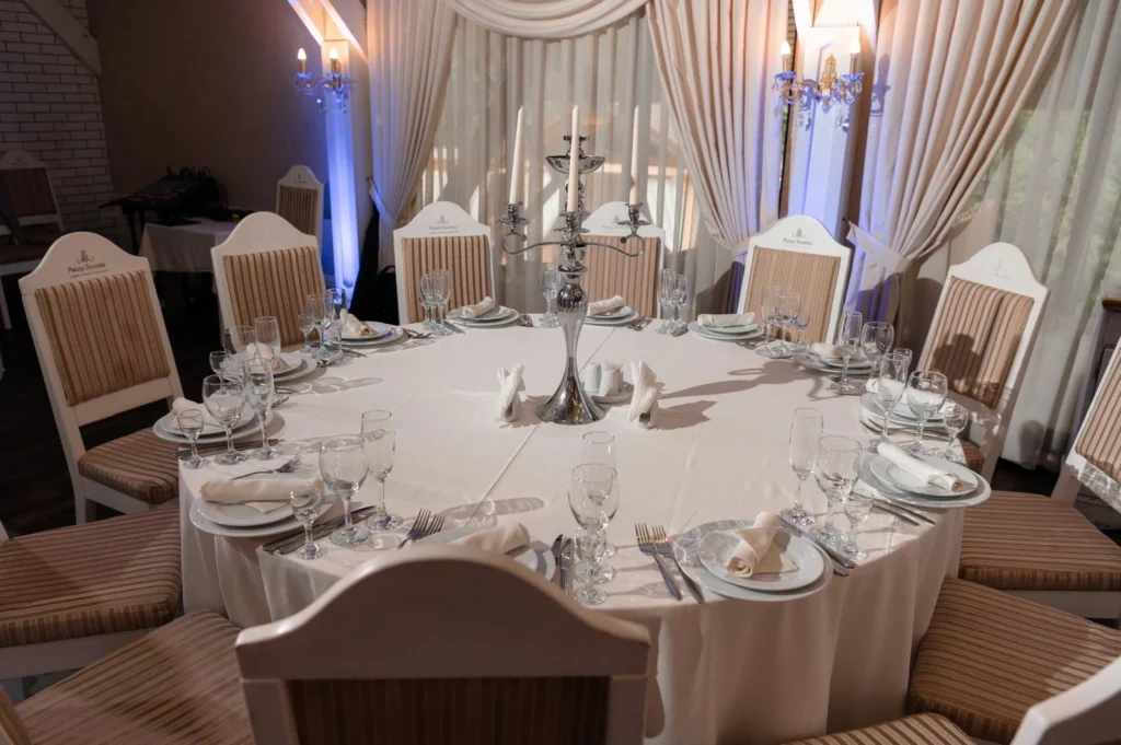 Торжественный зал — это гармония элегантности и уюта, идеально подходящая для мероприятий до 130 гостей. Просторный зал с изысканным дизайном создаёт особую атмосферу праздника. В вашем распоряжении частный двор с мягкими диванами и терраса с панорамным видом.